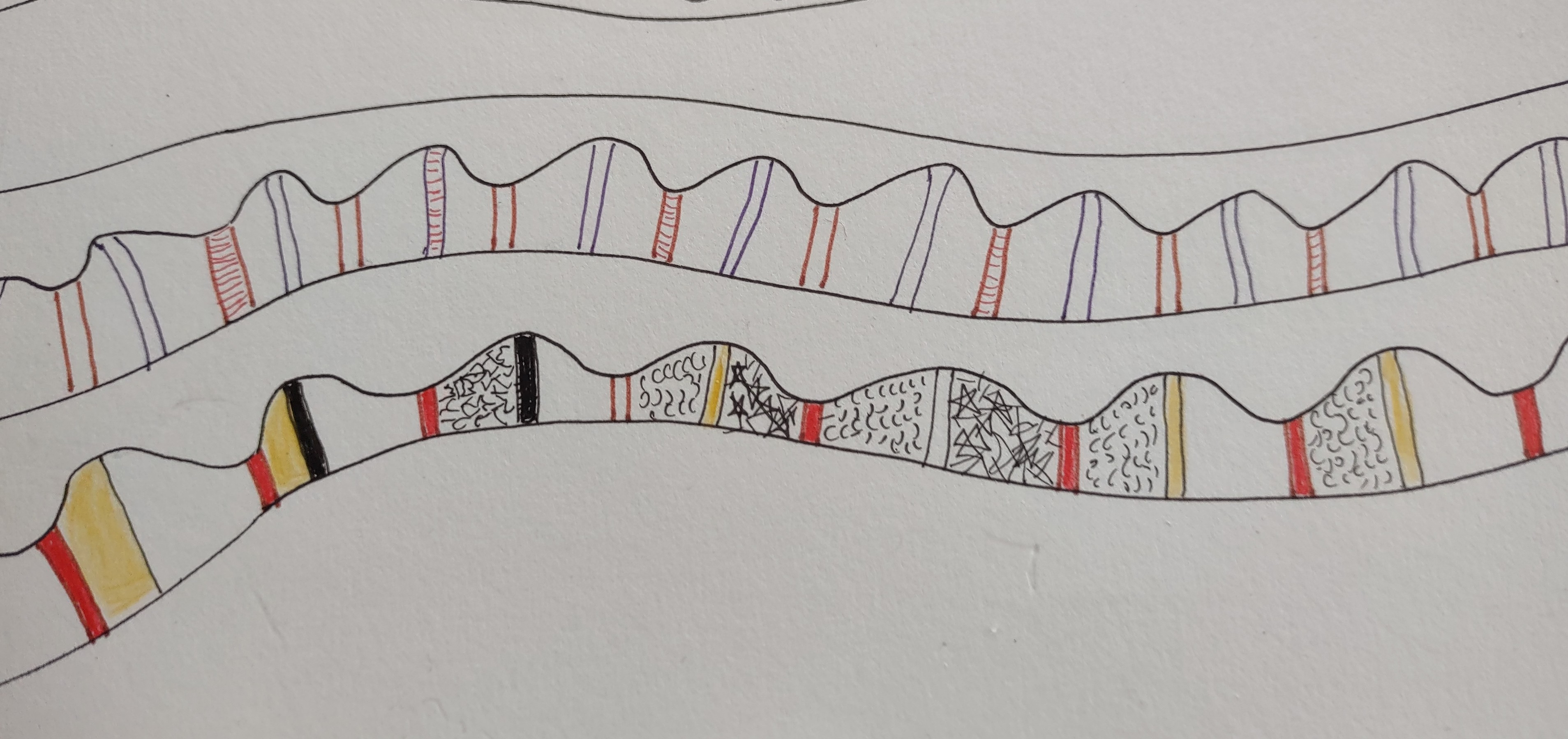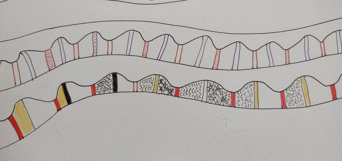 It is a cakelike structure I hold carefully, with both my hands, where the snakes are piled on top of each other, like fallen leaves, held together by light beige clay, triangular hourglass shapes and veins. The key is to place them in the water, without awakening their poison and getting bitten… as you move them and they start to wake up, their heads in red, black gray and yellow orange coral colors. Ready to strike if you disturb their peaceful life.